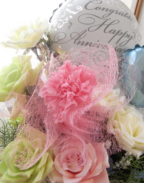 1本だけ飾ったカーネーションは、半永久的に形状を保つブリザーブドフラワーを使用しています。