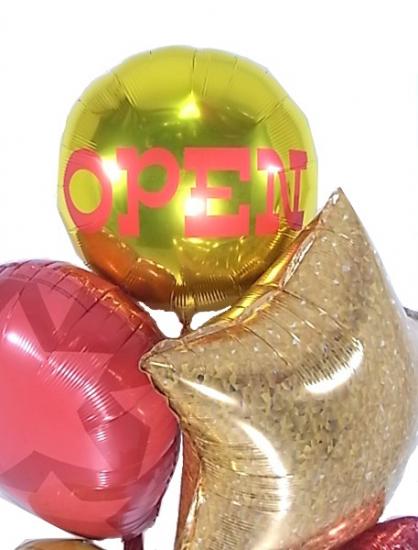 トップのラウンド型バルーンには「OPEN」の文字を大きくプリント。